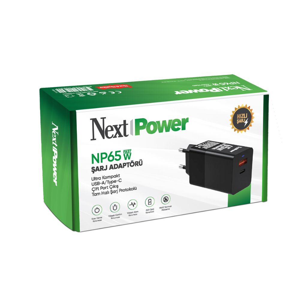 Next Power NP65 USB/Type-C Çift Port Çıkışlı 65 Watt Hızlı Şarj Adaptörü