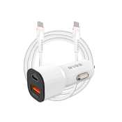 S-link SL-EC38PD TypeC to TypeC Kablolu 38W PD + USB QC3.0 Beyaz Araç Şarj Cihazı