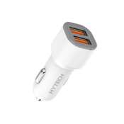 Hytech HY-X46 Type-C Kablolu 3.1A Hızlı Şarj 2 USB Beyaz Araç Şarj Cihazı